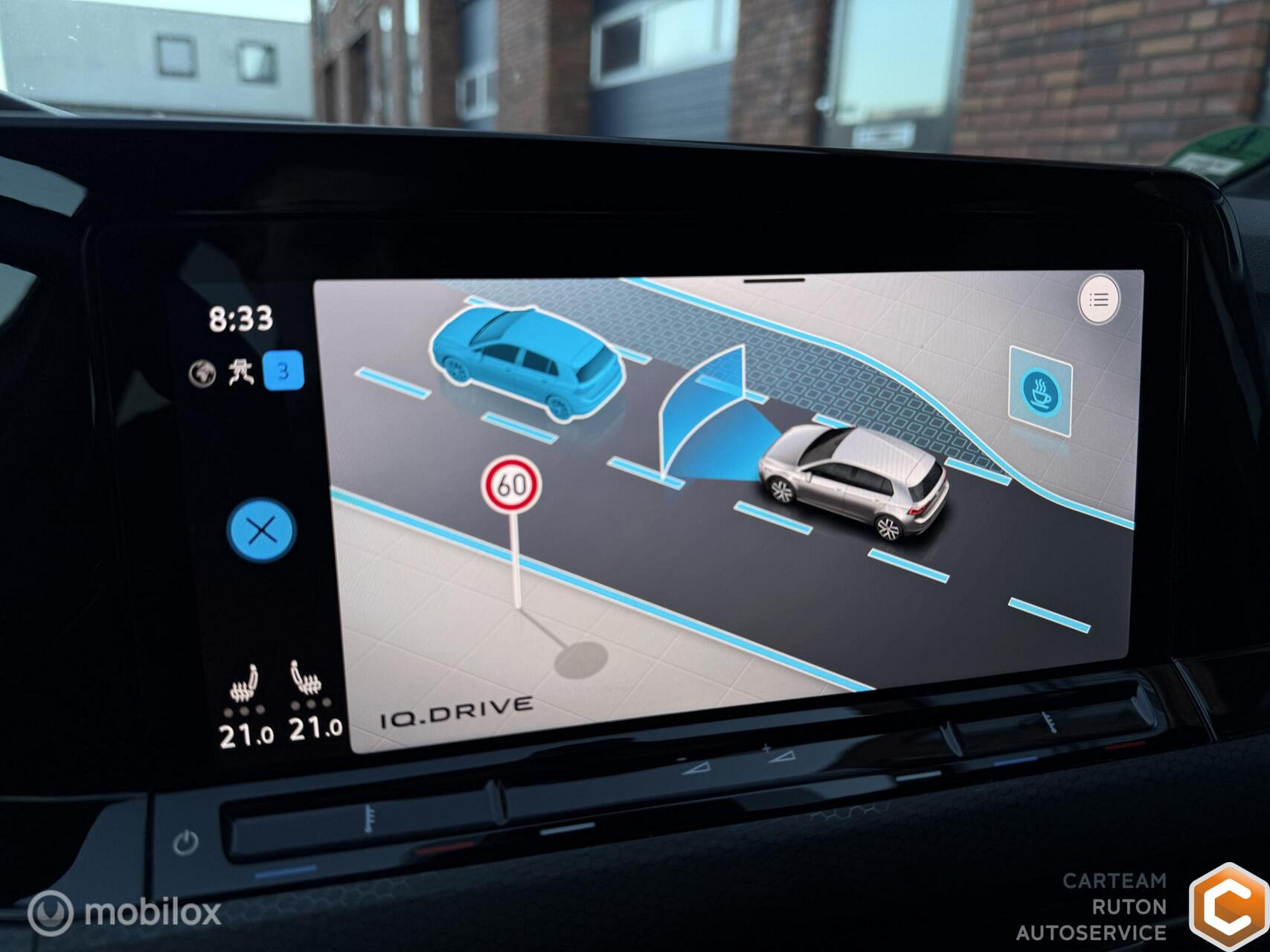 Dankzij het digitale dashboard leest u alle benodigde info gemakkelijk en overzichtelijk af. Adaptive cruise control is veilig en comfortabel. De snelheidsregelaar houdt automatisch afstand tot het voertuig dat voor u rijdt. Rijden-stilstaan, rijden-stilstaan. Niks is irritanter en vermoeiender dan filerijden. Daar heeft deze Volkswagen Golf een oplossing voor: de file assistent, die met radarmeting permanent het tempo aanpast op de voorligger. Zelfs als die stopt. Pech of storing, altijd vervelend. Maar met Connected Services weet u direct wat eraan scheelt. En dus ook wat er moet gebeuren. U kunt tijdens de rit uw ogen steeds op de weg houden, want het audio-installatiesysteem (met DAB!) en het navigatiesysteem kunt u bedienen vanaf het stuur of met spraak. Wat u ook in deze auto kunt vinden zijn achteropkomend verkeer waarschuwing, kruisend verkeer detectie, electronic climate control, schakelpaddles aan het stuur, draadloos opladen en parkeersensoren achter.